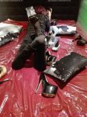 Guarda il video e segati con la mia maschera ruber fetish e il mio nylon super trasparente